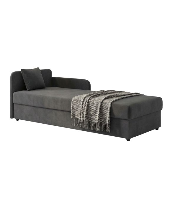 Tapczan wyposażony jest w system rozkładania wersalkowy, który umożliwia szybkie i wygodne przygotowanie miejsca do spania. Wbudowany pojemnik na pościel pozwala na przechowywanie kołdry, poduszki lub koca, co jest szczególnie przydatne w mniejszych pomieszczeniach.