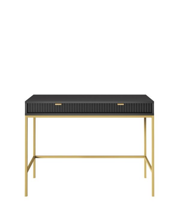 Toaletka Nova czarna (T104), black/gold marki Piaski to elegancki i funkcjonalny mebel, który doskonale sprawdzi się w sypialni czy w salonie, a nawet przedpokoju.