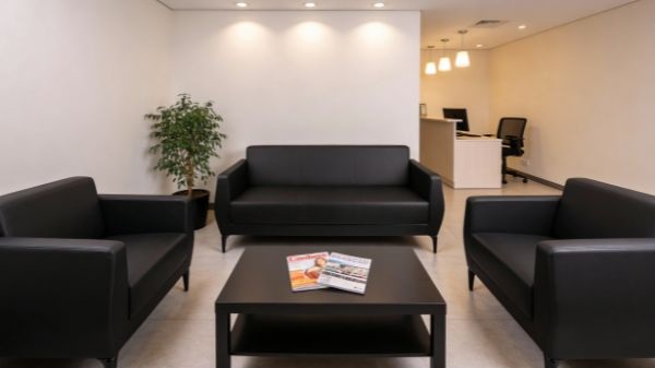 Trzyosobowa Sofa Basco 3, tapicerowana wysokiej jakości ekoskórą, doskonale sprawdzi się w holach, recepcjach, lobby oraz gabinetach.