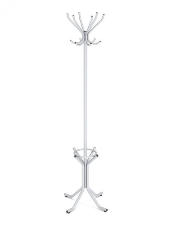 Całkowita wysokość wieszaka, to 185 cm z 12 uchwytami na odzież i miejscem na parasolki.