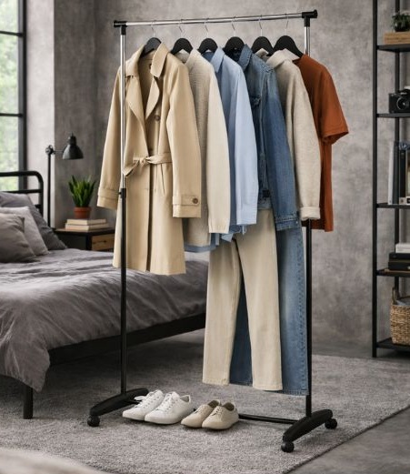 Wieszak Nova to świetna alternatywa dla tradycyjnej szafy – szczególnie w małych mieszkaniach lub jako dodatkowe miejsce na ubrania.