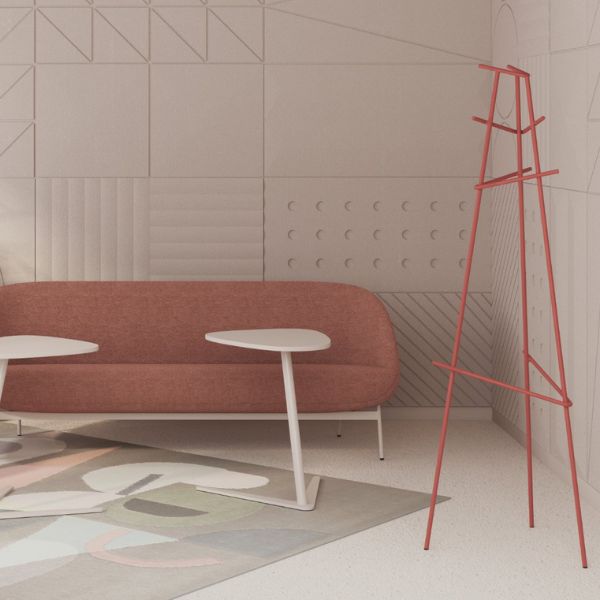 Jego lekka, geometryczna forma doskonale wpisuje się w nowoczesne wnętrza – od biur i recepcji po domowe przedpokoje.