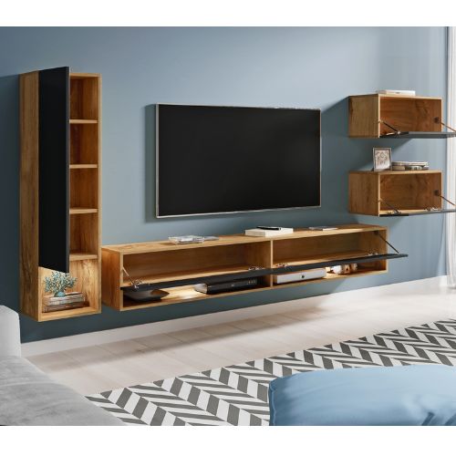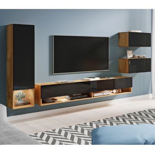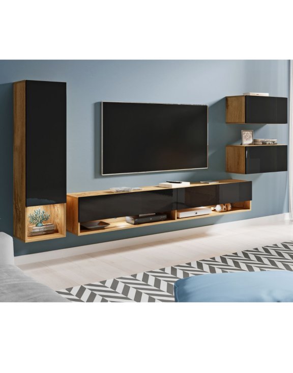 | Wisząca meblościanka do salonu dąb wotan/czarny połysk Amadeo (AMDWE01) | 1069 zł |