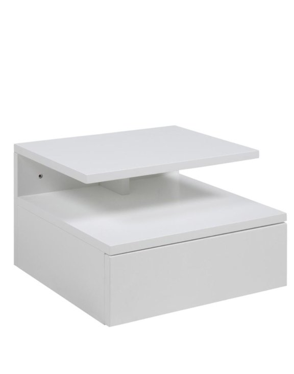Szafka nocna Ashlan to nowoczesny, wiszący mebel o prostokątnym kształcie, który idealnie sprawdzi się nawet w niewielkich sypialniach.