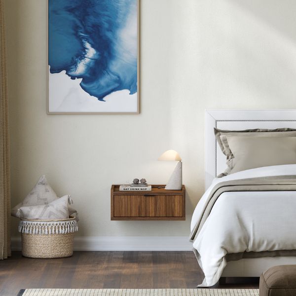 Wisząca szafka nocna Edison Brown Warmia Walnut to idealne rozwiązanie dla osób ceniących nowoczesny styl, funkcjonalność i lekkość we wnętrzu.
