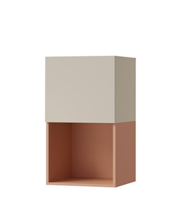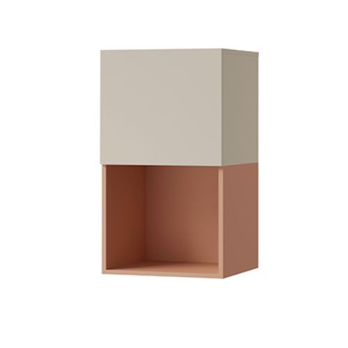 Wiszący regał z zamykaną szafki w pastelowych kolorach z kolekcji Lorin, który doskonale odnajdzie się w nowoczesnych wnętrzach.