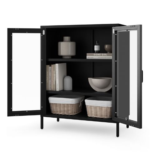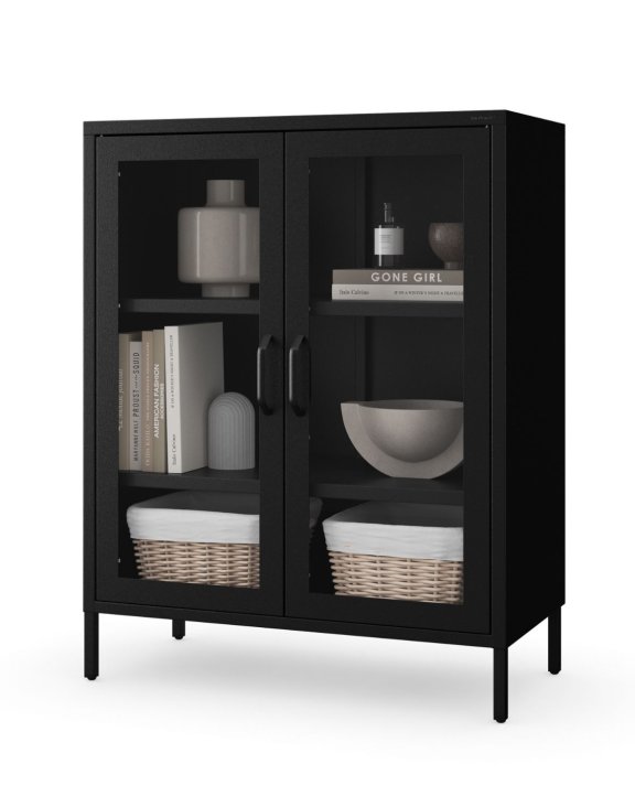 Witryna do salonu Gina na nóżkach w kolorze czarnym to synonim elegancji.