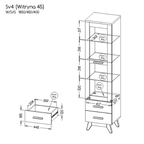 | Witryna słupek na nóżkach Sven SV4 sosna andersen | 809 zł |