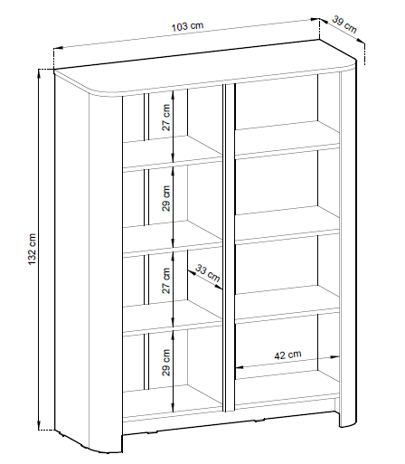 Wymiary: szerokość 103 cm, głębokość 39 cm, wysokość 132 cm.