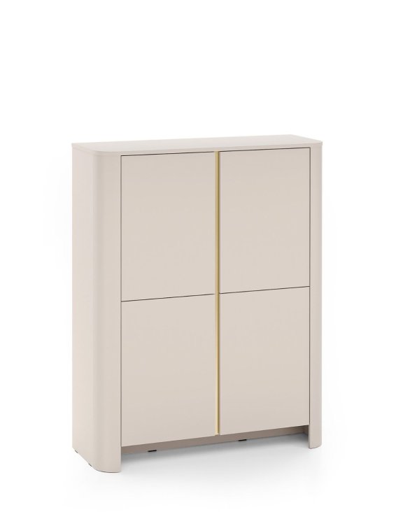 Poznaj wysoką komodę kaszmir K103 z kolekcji Bari marki Piaski, propozycję dla tych, którzy cenią prostą formę, wysoką jakość wykonania i subtelne detale.