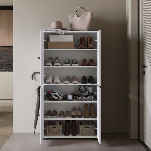 Model Dino został zaprojektowany z myślą o funkcjonalności. Szafka wyposażona jest w cztery drzwi, za którymi znajdują się praktyczne półki umożliwiające przechowywanie wielu par obuwia.
