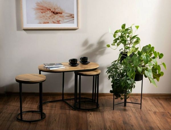 Dwa mniejsze stoliki możesz schować pod większą ławą, zyskując więcej przestrzeni w salonie. To świetne rozwiązanie do małych mieszkań i apartamentów.