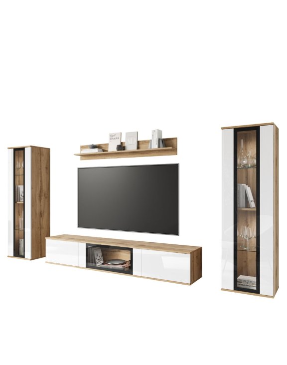 | Zestaw mebli modułowych do salonu dąb wotan/biały połysk - wiszące lub stojące (CAR01W0) | 1399 zł |