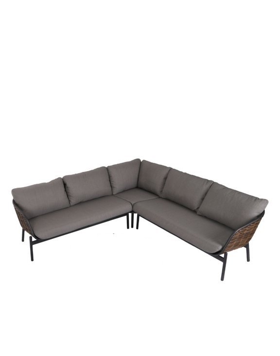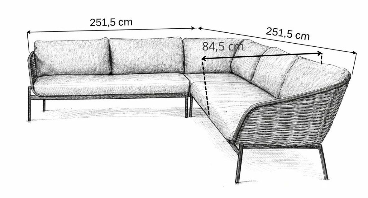 Narożnik został zaprojektowany w formie modułowego narożnika składającego się z trzech wygodnych sof ogrodowych.