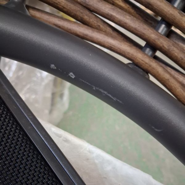 Dzięki konstrukcji z grubego 10 mm technorattanu jest niezwykle trwały i łatwy w czyszczeniu. Cały stelaż został wykonany z aluminium, malowanego proszkowo na antracytowy kolor, co zapewnia stabilność i odporność na warunki atmosferyczne.