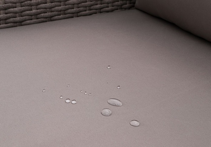 Poduszki w kolorze brązowo-szarym zostały uszyte z tkaniny hydrofobowej, która dzięki specjalnej obróbce odrzuca wodę zamiast ją wchłaniać. Oznacza to, że krople cieczy pozostają na powierzchni materiału.