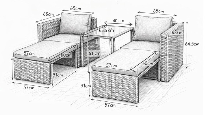 Dużą zaletą zestawu jest możliwość złożenia elementów w jedną, zwartą bryłę. To praktyczne rozwiązanie ułatwia przechowywanie poza sezonem oraz pozwala zaoszczędzić miejsce na mniejszym balkonie czy tarasie.