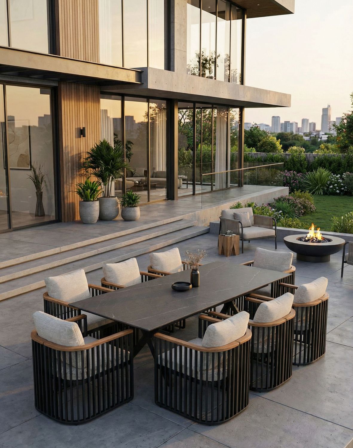Duża powierzchnia stołu pozwala komfortowo pomieścić 8 osób, tworząc idealne miejsce do wspólnych posiłków, spotkań z rodziną i relaksu na świeżym powietrzu.