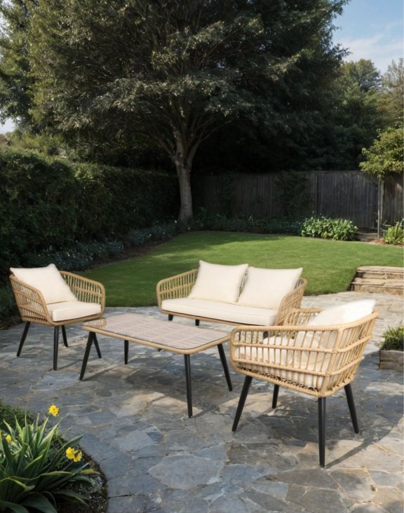 Dzięki naturalnemu designowi zestaw doskonale wpisuje się w różne aranżacje przestrzeni wypoczynkowej, zarówno w stylu nowoczesnym, jak i klasycznym.