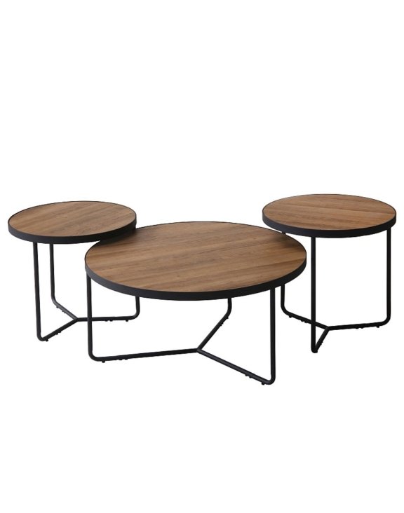 Składa się z trzech okrągłych ław/stolików o zróżnicowanej wysokości, co daje możliwość ciekawego i praktycznego ich ustawienia.