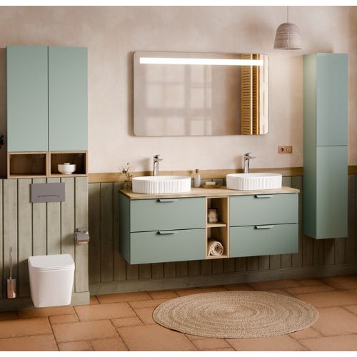 Zielona szafka łazienkowa 60 cm z blatem w zestawie jest idealnym i nowoczesnym rozwiązaniem do nowoczesnych i naturalnych aranżacji łazienek.