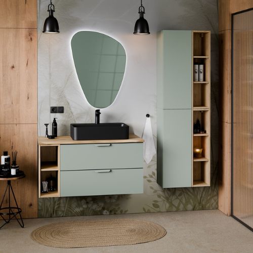 Zielona szafka łazienkowa 80 cm z blatem w zestawie, jest idealnym i nowoczesnym rozwiązaniem do nowoczesnych i naturalnych aranżacji łazienek.